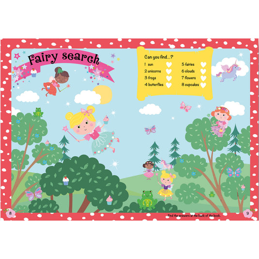 Fun-filled sticker activity book with puzzles and colouring. 14 colourful sticker pages including 1 page of sparkly holographic stickers.