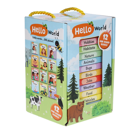 Hello World is a whole lot of fun bundled into a case of mini board books! Focusing on all the wonderful things that can be found on our Earth, the books introduce first words covering everything f...