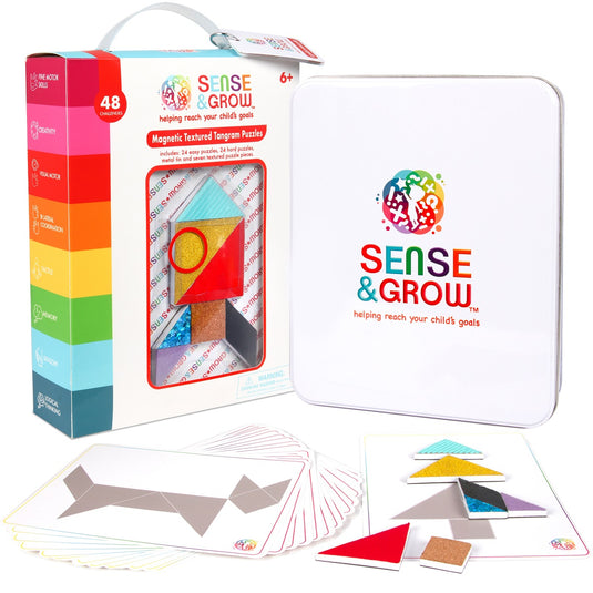 This Sense and Grow kit helps teach creativity, problem solving and fine motor skills. It includes 48 different brain teasers, each one on its card offering a unique challenge that is both educatio...