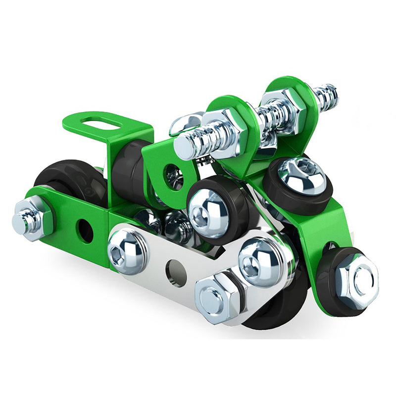 The Miniature Constructables series from Construct IT brings the same kind of fun as the larger sets, but on a smaller scale and with a smaller price tag. This Miniature Constructables Race Motorbike is a great way for a child to have some creative fun as they put each metal piece into place! That is right, this set is made with metal pieces, and included inside of the box is a little set of tools that children use to build it. This is just so much fun and far more engaging than more simple "block" building sets. One thing that is extra great about this is the instructions. These are made with children in mind so they are very easy to follow so that they do not get frustrated.